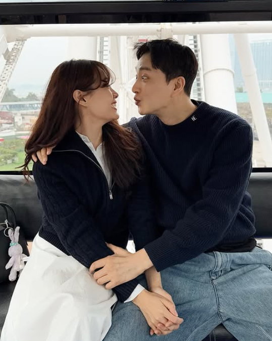 공개된 사진 속 송지은과 남편 박위는 관람차에 타고 있으며, 두 사람은 꼭 붙어 포즈를 취하는가 하면 행복한 듯 밝게 웃고 있다.