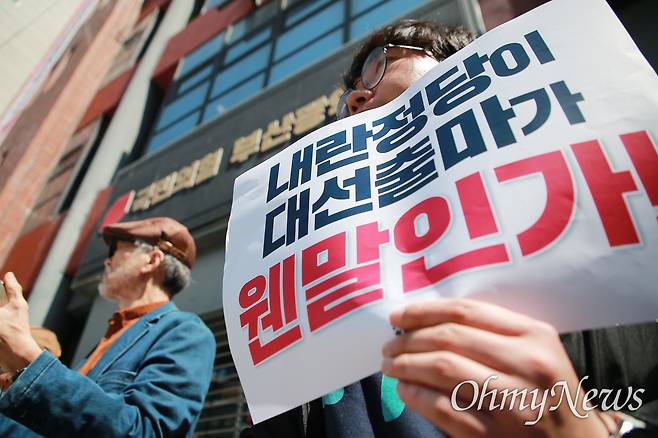 [오마이포토] "내란 정당에서 대선출마? 부끄럼 없나"