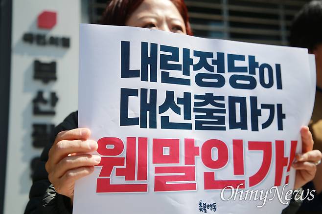 공은희 부산촛불행동 공동대표는 "개헌을 빌미로 위기 탈출을 시도하고, 이재명 (더불어민주당) 대표 심판 선거라는 후안무치한 소리를 지껄이고 있다. 이도 모자라 너도나도 대선 출마를 선언하는 상황"이라며 적반하장식 태도를 규탄했다. 선거 귀책 사유 제공에도 반성보단 앞다퉈 출마에만 공을 들이는 건 문제가 크다는 지적이다.