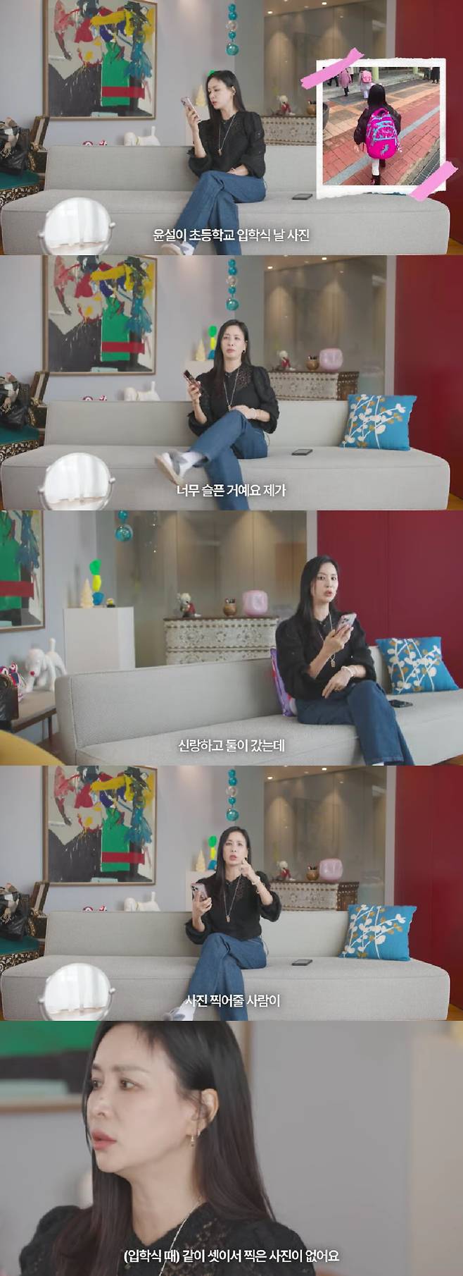 그는 "자기만한 가방 메고 가는 뒷모습 보는데 너무 슬픈 거다. 신랑하고 둘이 갔는데 짐이 많아서 손이 없었다. 사진 찍어줄 사람이 없어서 (입학식 때) 셋이서 같이 찍은 사진이 없다"며 속상함을 드러냈다.