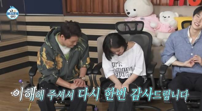 이어 전현무는 박나래에게 "이해해 주셔서 감사하다"며 고개 숙였고, 박나래는 웃음을 터뜨리면서 전현무의 사과를 받아줬다. 이를 본 구성환은 "나래가 대인배"라고 칭찬했다.