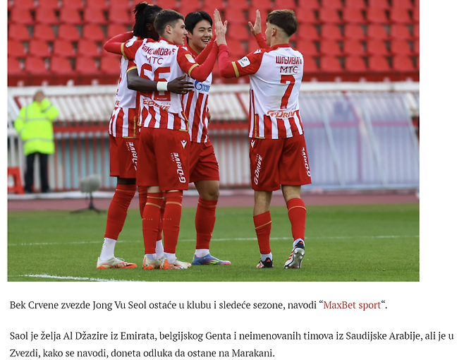 2024-2025시즌 세르비아 1부리그 최고 평점을 얻은 설영우에 대해 현 소속팀인 명문 구단 츠르베나 즈베즈다가 '판매 불가'를 외쳤다.