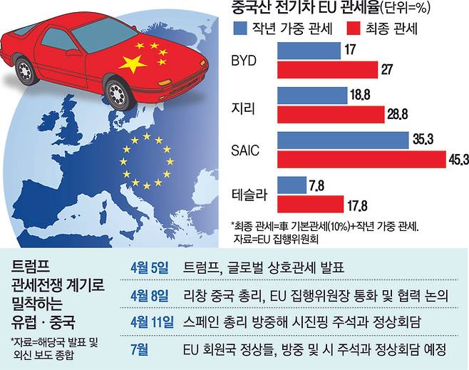 미국발 글로벌 '관세 전쟁'이 격화하고 있는 가운데 중국과 유럽연합(EU)이 빠르게 밀착하고 있다.
