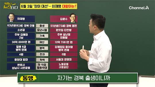 나이는 이재명 전 대표가 62세, 김문수 전 장관이 73세. 김 전 장관이 11살 많습니다. 두 사람 모두 경북에서 태어났다는 공통점이 있는데요. 이 전 대표가 고향인 경북 안동에 공을 많이 들이고 있습니다. 영남에서도 꽤 많은 표를 얻어 보겠다는 거죠. 만약 김문수 전 장관이 국민의힘 대선후보가 된다면, 같은 경북 출신이니까 표를 많이 뺏기지 않을 수 있습니다.