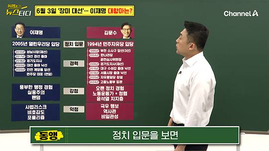 이재명 전 대표는 첫 직업인 변호사 때 성남 시민단체에서 시민운동을 주로 했습니다. 지자체 풀뿌리에서 시작한 건데요. 김문수 전 장관은 구로공단에서, 노동운동 큰 판에서 시작을 했다고 볼 수 있습니다.