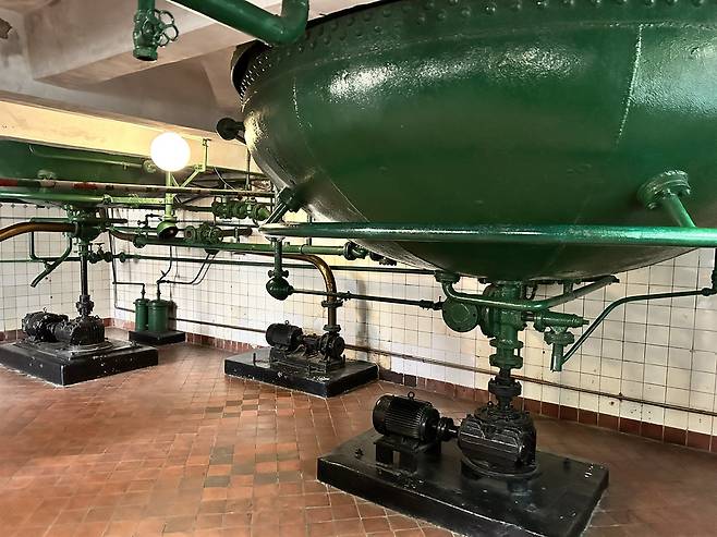 칭다오 양조장은 1공장과 2공장이 있다. 이곳 맥주 박물관은 본사가 있는 1공장이다. 2공장은 차로 22분 떨어진 리창구에 있다. 한국에 수입되는 칭다오는 모두 1공장에서 생산된다. 2공장 맥주는 중국 현지인들에게 더 저렴하게 판매한다고 한다. 100주년 기념물 주위로 높게 솟은 굴뚝과 모락모락 김이 나오는 시계탑을 보니 맥주 양조장에 있다는 실감이 들었다.