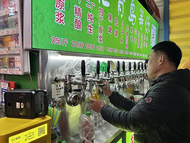 칭다오 맥주 박물관 투어를 마친 후, 10분 거리에 있는 타이동 야시장을 방문했다. 엄청나게 다양한 길거리 음식들을 먹을 수 있었다. 약간의 도전 정신이 필요한 음식도 보였다. 하지만 내 눈에 꽂힌 건, 거리에서 파는 생맥주였다. 타이동 야시장뿐만 아니라 거리 곳곳에서 생맥주 기계를 볼 수 있었다. 한국에서는 불법이다. 생맥주는 주류 판매 허가를 받은 일반음식점에서만 판매할 수 있다. 길거리에서 맥주를 파는 장면도 생경한데, 생맥주라니. 한국에서 할 수 없는 경험이 재미있었다.