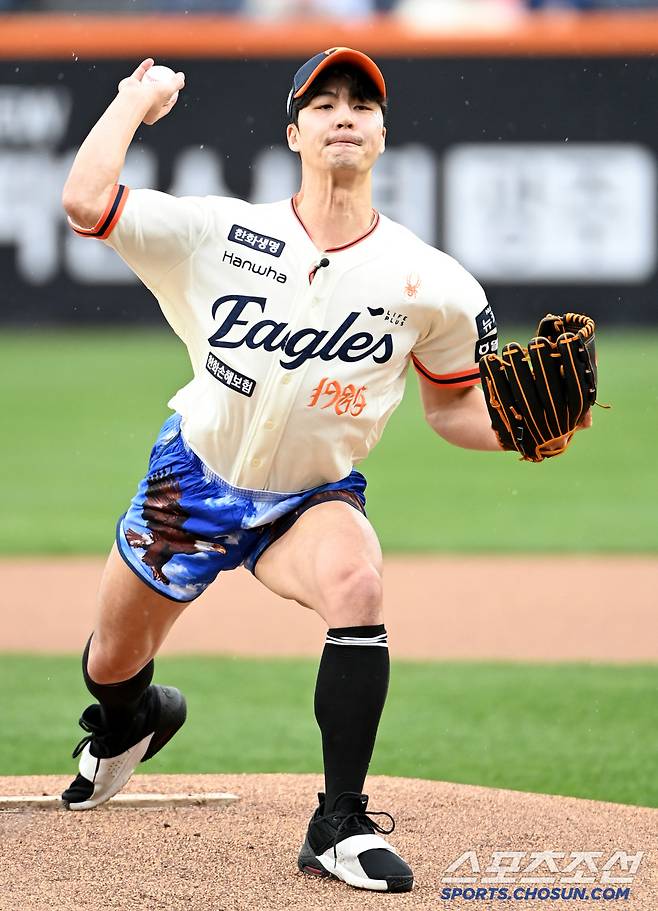 12일 대전 한화생명볼파크에서 열린 키움과 한화의 경기, 크리에이터 말왕이 시구를 하고 있다. 대전=허상욱 기자wook@sportschosun.com/2025.04.12/