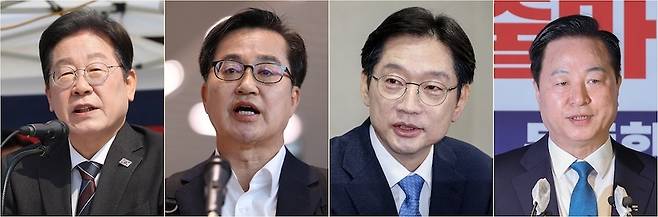 [더불어민주당 제21대 대통령선거 경선 출마자들. 왼쪽부터 이재명 전 민주당 대표, 김동연 경기지사, 김경수 전 경남지사, 김두관 전 의원. (연합뉴스 자료사진)]