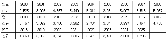 [표] 2000~2025년 1~2월 신규 개업 공인중개사 수 (단위:명)