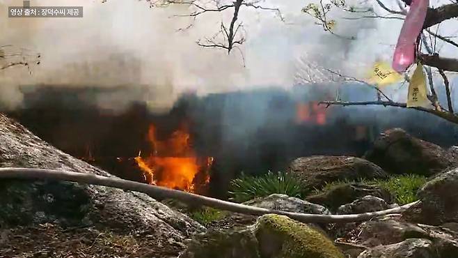 지난 3월 26일 오후 1시30분쯤. 전남 구례 산수유 마을을 지나가다가 시커먼 연기가 피어오르는 장면을 목격한 정일기씨 부부.