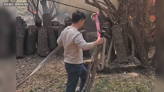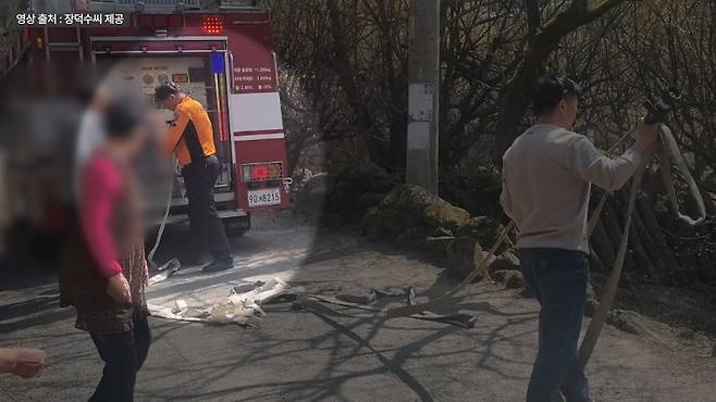 “2~3분 정도 있으니까 도착하시더라고요. 호스 깔고 있는 중에 제가 보니까 혼자라서 옆에 가서 같이 본능적으로 관창을 잡고서. 그러니까 잡으시면 안 됩니다. 위험하다고 내보내고...”