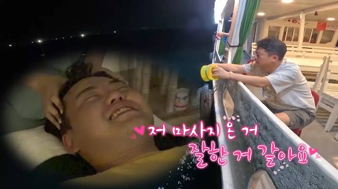 배에 오른 오징어낚시 배 팀은 이후 서로의 팔 다리를 주물러 주면서 마사지를 했고, 오징어 낚시에도 성공해 나름 즐겁게 시간을 보냈다.