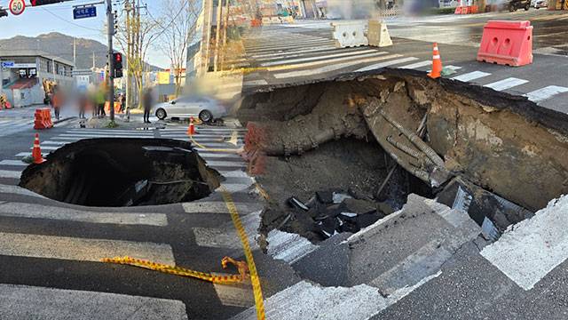 오늘 새벽 5시쯤 부산 사상구 학장동의 한 도로에서 가로 5m, 세로 3m, 깊이 4~5m 규모의 싱크홀이 발생했습니다.