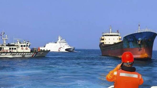 ▲ 지난 2월 케이블 훼손 사건 조사 중인 타이완 해경
