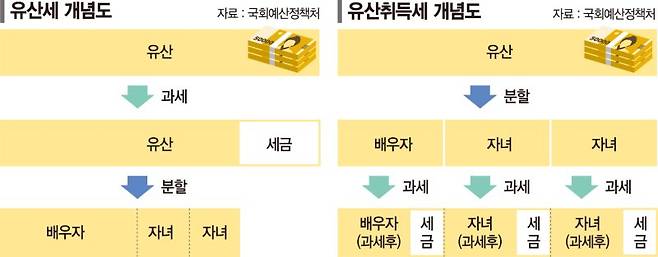 A. 13일 BDO성현회계법인에 따르면 정부가 지난달 발표한 유산취득세 방식에 따라 A씨가 부담해야 할 상속세는 기존 대비 약 60% 감소할 전망이다. 지난달 기획재정부는 유산취득세 방식을 도입하는 상속세 개편안을 내놨다. 현재 상속세는 피상속인(사망자)이 남긴 전체 상속을 기준으로 계산하는 유산세 방식이다. 반면 유산취득세는 상속인을 기준으로 상속 재산을 물려받는 만큼 상속세를 내는 방식으로, 무상 이전된 자산으로 인해 상속인의 자산 증가에 대한 소득을 과세하는 개념이다. 현 증여세 과세체계와 동일하다.