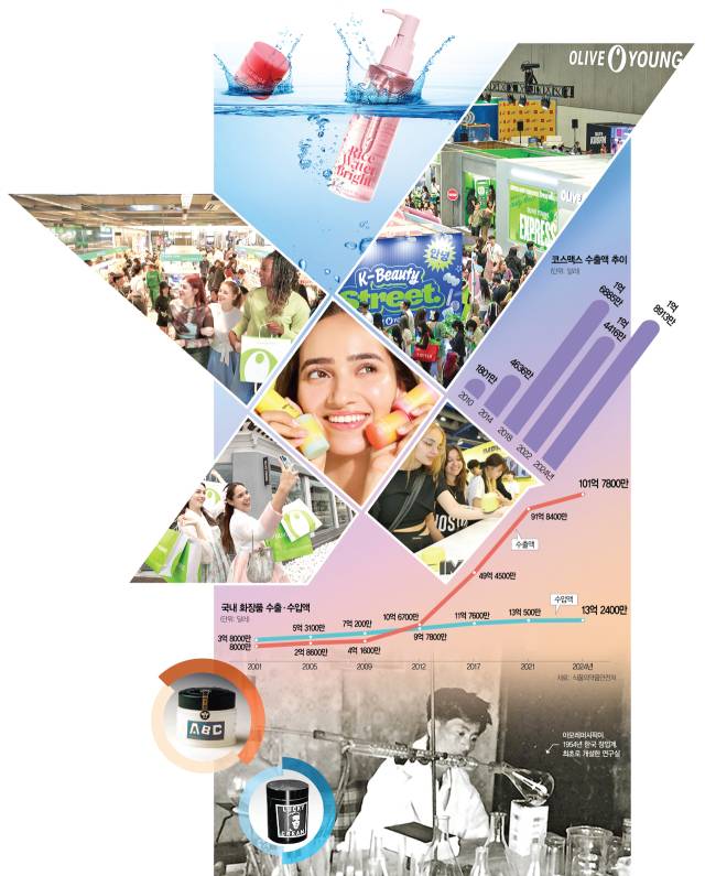 1940~1950년대 행상들이 북을 ‘둥둥’ 치며 팔던 크림이라는 뜻으로 ‘동동구리무’라고 불리던 국산 화장품은 출시 초기 반짝 인기를 끌었으나 수입 제품에 비해 품질 등이 뒤떨어진다는 인식에 오랜 기간 소비자들의 외면을 받았다. 무역수지에서도 화장품은 2011년까지 수입액이 수출액보다 많은 적자 산업이었다. 하지만 2012년 수출액이 처음으로 10억 달러를 넘기며 수입액을 앞지르기 시작했다. 10여 년이 2024년 화장품 수출액은 사상 첫 100억 달러를 돌파한 101억 7800만 달러를 기록하며 대표적인 ‘수출 효자’ 산업이 됐다.