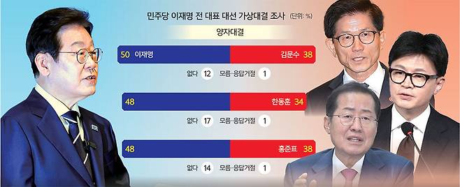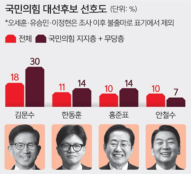 국힘 지지층선 金 42%·韓 17%·洪 16%
