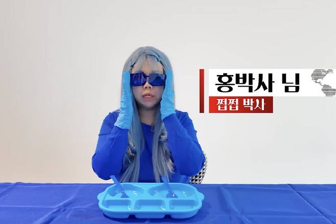 홍현희는 "한 연구에 의하면 파란색으로 시각적인 효과로 인해서 밥맛이 떨어질수 있어서 다이어트에 효과적이라는 글을 봤다. 제가 한번 준비해봤다. 보시는 분들도 저를 보고 밥맛 떨어지게"라고 웃었다.