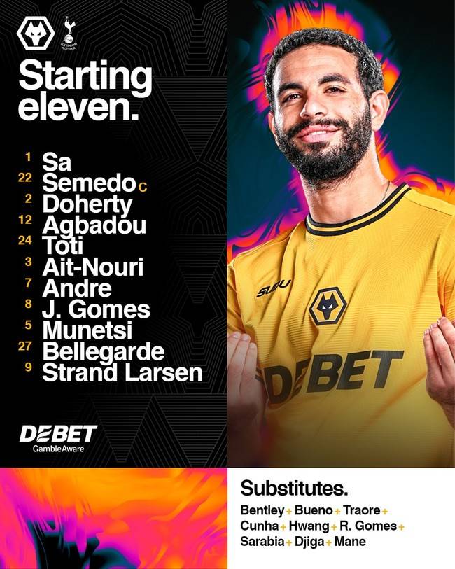 경기를 앞두고 양 팀이 선발 라인업을 공개했다. 홈팀 울버햄튼은 사, 세메두, 도허티, 아그바두, 토티, 아잇-누리, 안드레, 고메스, 무네시, 벨가르드, 스트란드 라르센이 선발로 나선다.