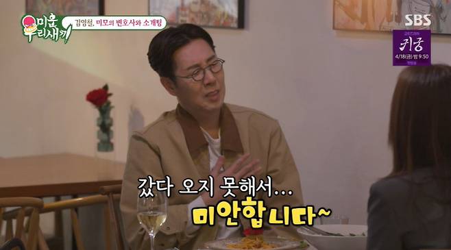 13일 방송된 SBS '미운 우리 새끼'에는 김영철이 미모의 변호사와 소개팅하는 모습이 공개됐다.