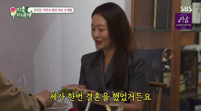 미모의 변호사는 김영철을 향해 "실물이 훨씬 났다"며 칭찬, 김영철은 "과찬이시다"며 웃었다. 김영철은 이름을 물어본 뒤 '이승은'이라는 말에 "이승...그러니까...아니다"면서도 "이승은 저승은.."이라며 유머를 선보였다. 결국 누나는 "부끄럽다"고 했고, 서장훈도 "가만히 있어라"고 해 웃음을 안겼다.