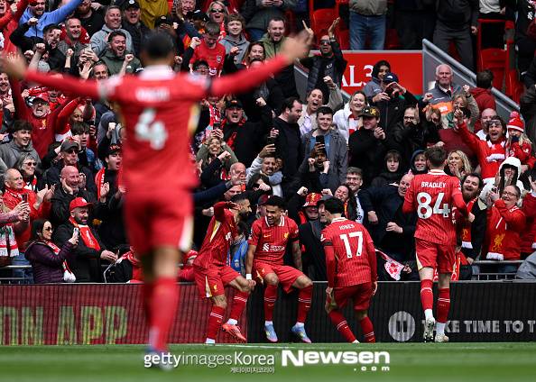 리버풀은 4월 13일(이하 한국시간) 영국 리버풀 안필드에서 열린 웨스트햄 유나이티드와의 '2024-2025 잉글랜드 프리미어리그' 32라운드 경기에서 2-1로 승리했다.
