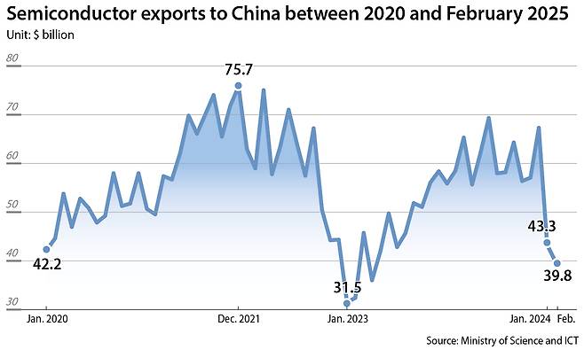 For now, though, China is the top chip importer from Korea, as the country hoards AI chips and related equipment amid tightening U.S. export restrictions.
