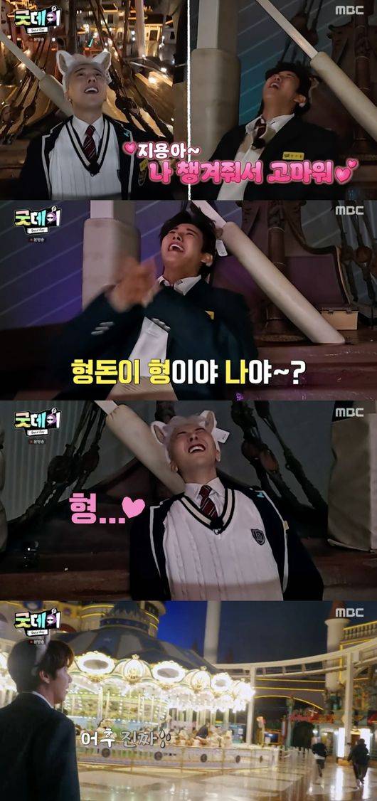 이어 두 사람은 바이킹 탑승했고, 양 끝에 앉아 서로에 대한 속마음을 전하기로 했다. 광희는 “지용아 나 챙겨줘서 고마워”라며 “너 맨날 그러면서 나 챙기잖아. 맨날 나 얘기하고 나 진짜 행복한 사람이야”라고 전했다. 이에 민망한 지드래곤은 “네가 날 자꾸 태그하잖아”라고 장난을 쳤다.