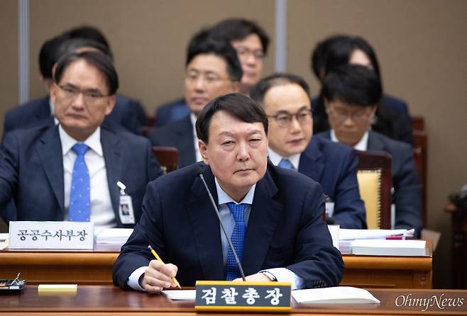 | ▲ 윤석열 검찰총장이 2019년 10월 17일 오전 서울 서초구 대검찰청에서 법사위 국정감사에서 답변하고 있다. |
