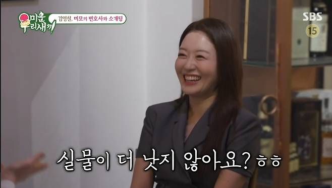 김영철은 "소개팅을 한 지 반년 정도 됐다. 일을 좀 많이 하고 있다. 개업을 하긴 했는데 회사에 소속돼 있는 형식으로 개업했다. 별산 변호사다"라고 했다.