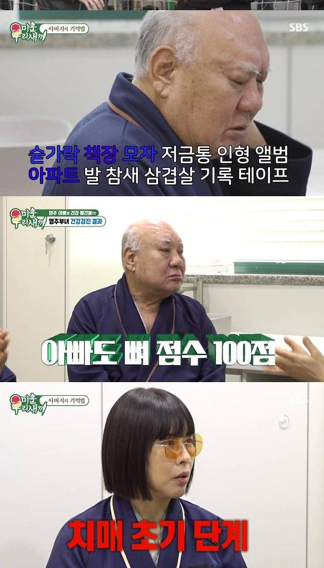 이날 정영주의 아버지가 치매 초기 판정을 받아 충격을 안겼다. 합가 6개월째, 자주 기억을 잃어버리고 같은 질문을 반복하는 모습에 정영주는 아버지를 모시고 신경과를 찾았다.