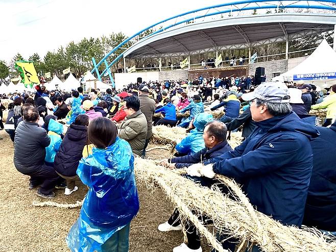 | ▲ 줄다리기는 ‘줄고사’를 시작으로 ‘줄나가기’, ‘줄다리기’까지 전통 절차를 그대로 재현됐다. |