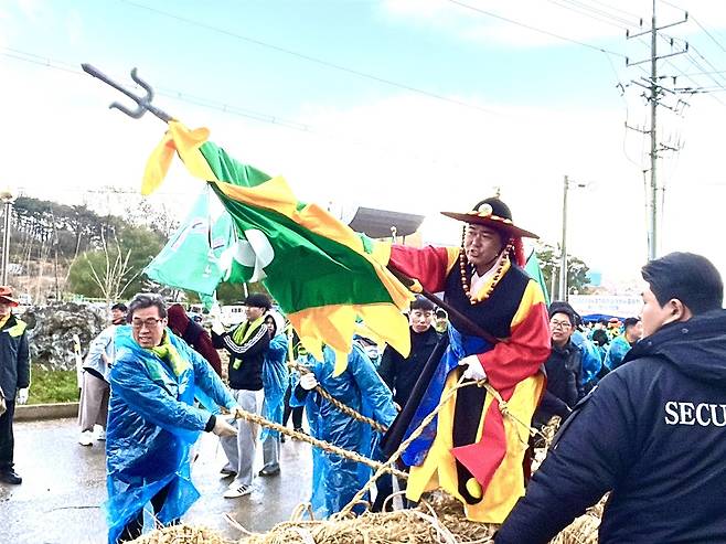 줄다리기 행사는 농기와 영기가 풍물패와 함께 줄다리기 장소로 모여들면서 수백개의 농기는 장관을 이뤘다.