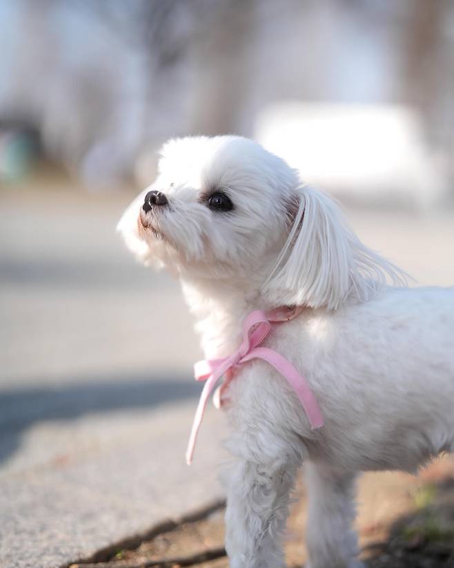 이어 그는 "그리고 벚꽃 머털이"라며 봄을 만끽하는 반려견의 사진도 공개했다.