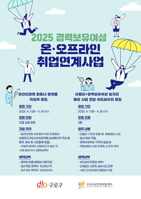 구로여성인력개발센터는 구로구와 함께 2025 경력보유여성 온·오프라인 취업연계사업을 진행한다고 밝혔다.