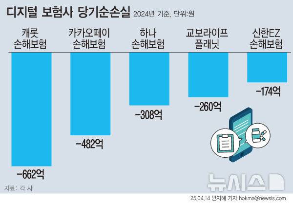 14일 금융업계에 따르면 지난해 국내 디지털 보험사 5곳(캐롯·카카오·하나·교보라이프·신한)의 당기순손실 총액은 1886억원에 달한다.