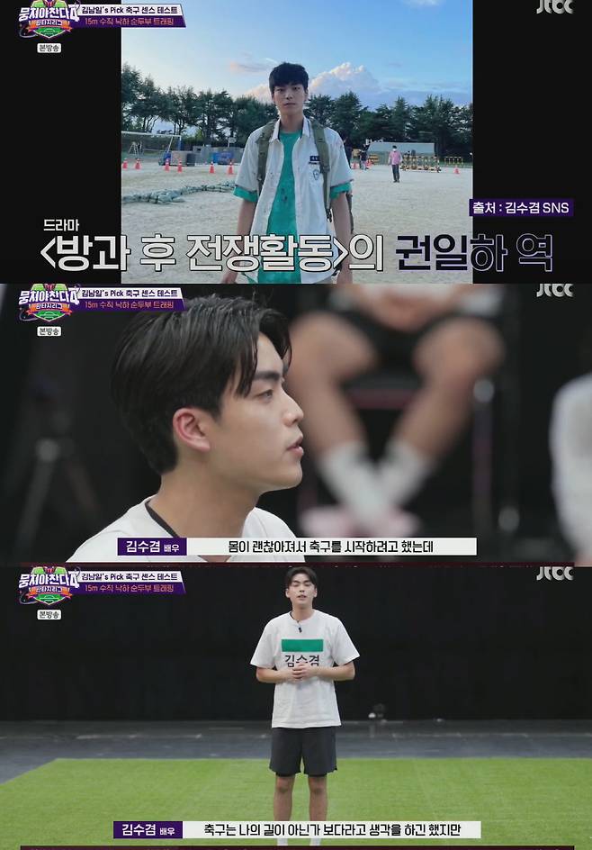 라이징 스타로 떠오르고 있는 배우 김수겸이 등장하자 안정환은 "축구 선수가 꿈이었는데 안 좋은 일이 있었다고"라고 물었다.