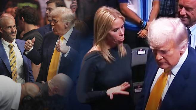 도널드 트럼프 미국 대통령이 현지 시간 12일, 종합격투기 UFC 경기를 관람하기 위해 플로리다주 마이애미에 있는 카세야 센터를 찾았습니다.