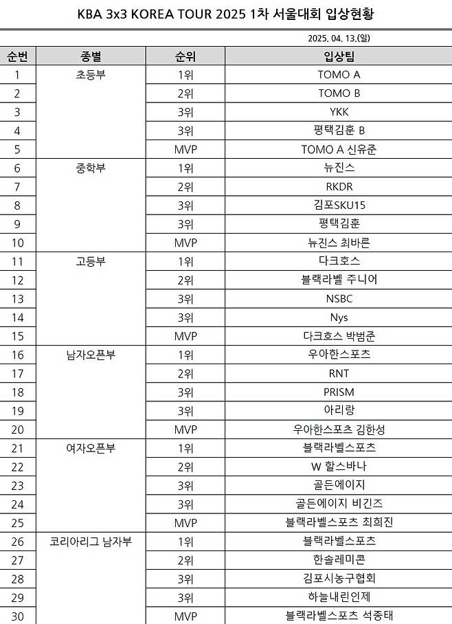 대한민국농구협회(KBA)는 12일(토)과 13일(일) 이틀간 서울 영광고등학교 월계관(체육관)에서 KBA 3x3 코리아투어 2025 서울대회를 개최했다.