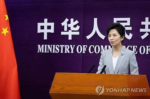 [중국 상무부 브리핑 모습 (EPA=연합뉴스 자료사진)]