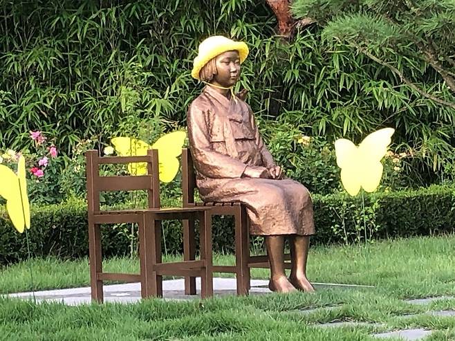 | ▲ 아산 신정호에 설치됐던 소녀상. 현재는 인근으로 이동조치된 상태이다. |