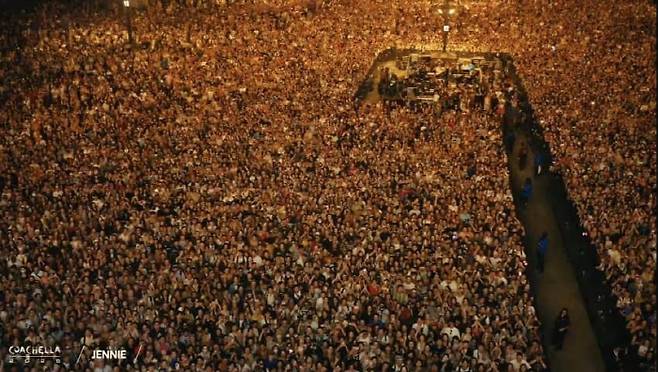 제니는 13일(현지시간) 미국 캘리포니아주에서 열린 대형 야외 음악 축제 '코첼라 밸리 뮤직 앤드 아츠 페스티벌'(Coachella Valley Music and Arts Festival·이하 코첼라)에 솔로로 출격, 1시간 정도의 무대를 쉬임없이 꽉꽉 채웠다.