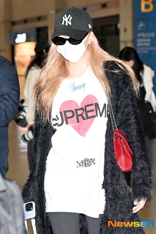 이날 유나는 허벅지까지 길게 내려오는 흰색 티셔츠에 회색 레깅스를 입고 검은색 퍼재킷을 걸쳤다. 여기에 빨간색 체인 숄더백에 검은 선글라스, 회색 볼캡을 착용해 민낯을 센스 있게 가렸다.