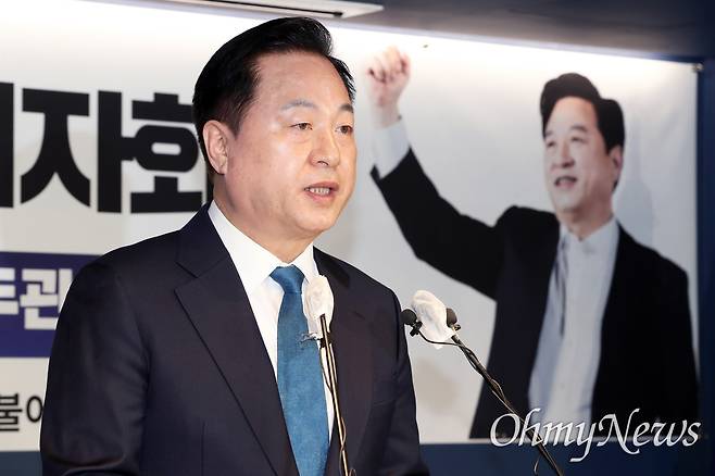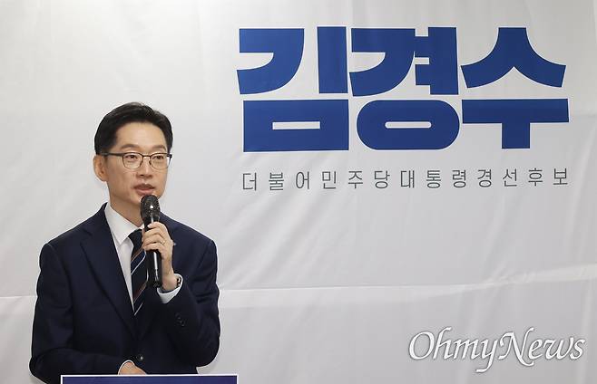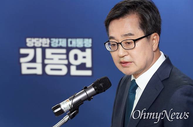 | ▲ 더불어민주당 대선 경선 출마를 선언한 김동연 경기도지사가 14일 오후 서울 여의도 캠프에서 경선룰 관련 입장 발표를 하고 있다. |