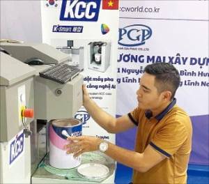 KCC는 이 기술을 베트남 대리점(사진)에도 적용하고 있다. 호찌민, 하노이 등 대리점 두 곳에 우선 활용했고 연내 5곳, 내년까지 10곳에 도입할 계획이다. 베트남은 생동감 있는 색상을 선호하는 시장인 데다 트렌드에 민감해 빠르게 조색할 필요성이 크다는 게 회사 측 설명이다.