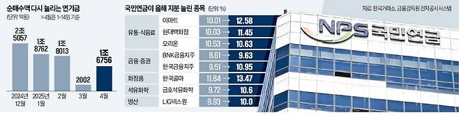 홍춘욱 프리즘투자자문 대표는 “거래량이 많고 장기 투자 가치가 높다고 판단되는 종목이 국민연금 포트폴리오의 중심”이라며 “국민연금의 투자 일임을 맡은 운용사들 역시 관세 영향이 작은 곳을 노려 저가 매수에 나섰을 것”이라고 말했다.