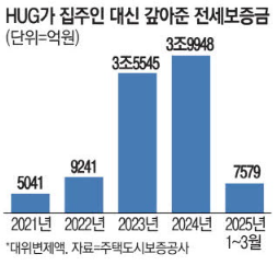 기존 든든전세는 전세 사고가 난 경매 주택을 HUG가 직접 낙찰받아 임대하는 것이다. 하지만 HUG가 집주인 대신 갚아준 보증금(대위변제액)이 연간 조 단위로 불어나자 경매로는 이를 회수하기가 쉽지 않다고 보고 정부가 든든전세2를 새로 내놨다. 이는 HUG가 대위변제 주택을 집주인에게서 직접 환매조건부로 매입·임대하는 유형이다.