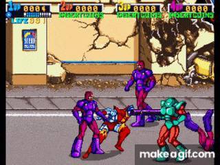 게임을 시작하면 적으로 등장하는 다수의 센티널들과 싸우게 되지만 가끔 보스급으로 엑스맨의 네임드 빌런들도 등장하기 때문에 당시 '엑스맨'의 팬들이라면 열광 하지않을 수 없는 아케이드 게임이었던 셈이죠. 당시에 이 정도로 화려한 그래픽 효과를 자랑하는 '엑스맨' 소재의 비디오 게임이 드물었던 것도 사실이구요.