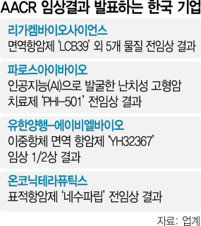 세계 3대 암 학회인 미국암연구학회(AACR)에서 국내 제약·바이오 기업들이 초기 개발 단계의 신약 연구 결과를 공개해 글로벌 기업과 협업을 모색한다.